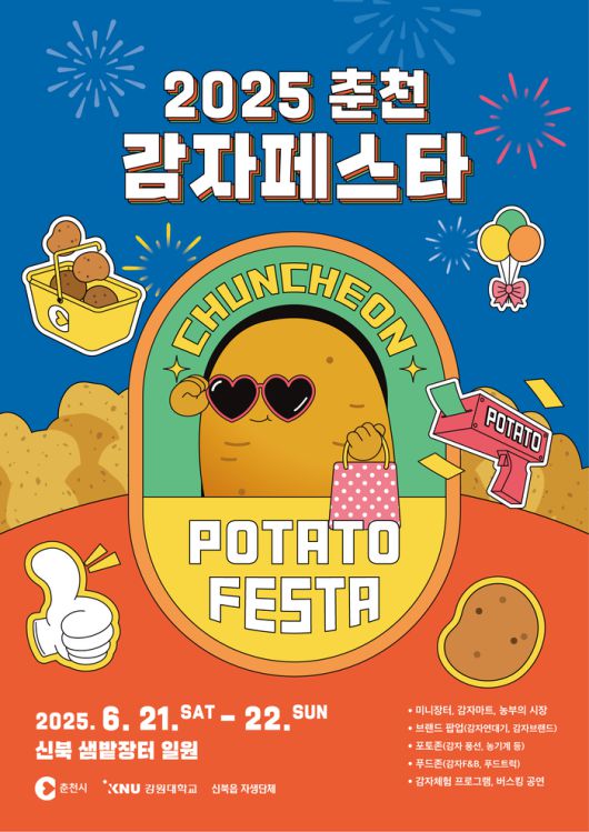 올해 감자 페스타는 단순한 판매 중심 행사를 넘어 농산물과 로컬 브랜드, 관광 콘텐츠가 결합된 젊고 활기찬 체험형 축제로 기획됐다. 또 춘천시와 강원대, 신북읍 자생단체, 로컬 브랜드들이 협력해 민·관·학이 함께 만들어 가는 주민참여형 축제로 기획됐다.