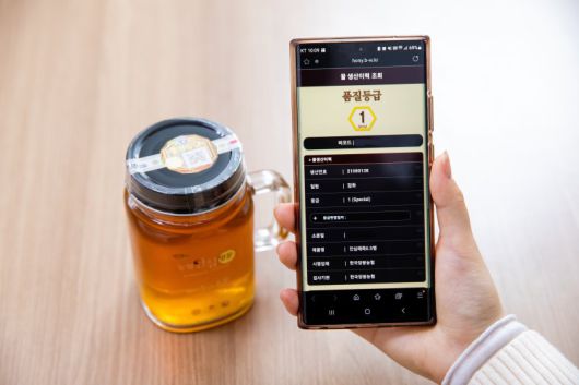 큐알코드를 통해 등급판정 받은 꿀의 이력을 조회하는 모습 축산물품질평가원 |