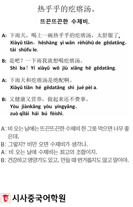 [시사중국어학원의 리얼 중국어 회화] 뜨끈뜨끈한 수제비.