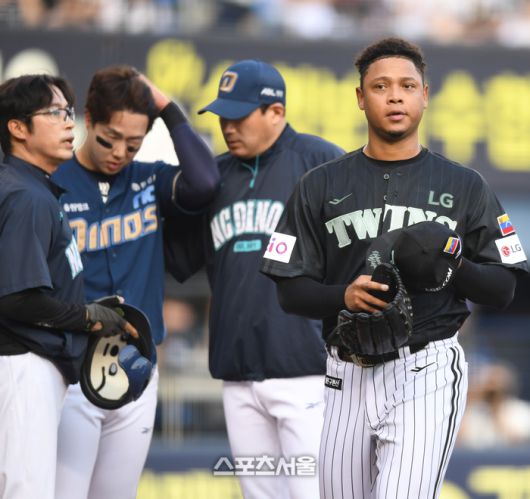 LG 선발투수 에르난데스가 17일 서울 잠실구장에서 열린 2025 KBO리그 NC와 경기 2회초 무사1루 상대 박건우 헤드샷으로 자동퇴장돼 덕아웃으로 들어오고 있다.2025. 6. 17.잠실 | 최승섭기자 thunder@sportsseoul.com [기사제보 news@sportsseoul.com] Copyright ⓒ 스포츠서울&sportsseoul.com