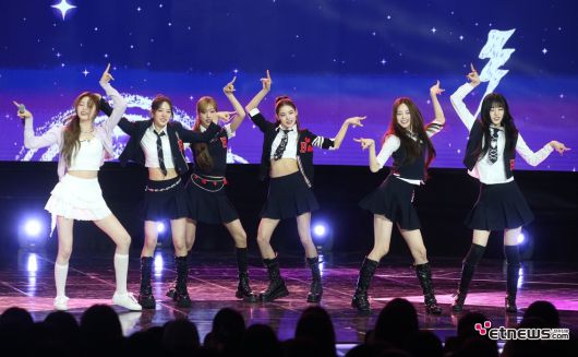 그룹 이즈나가 17일 서울 상암동 SBS프리즘타워에서 진행된SBS funE ‘더 쇼’ 현장 미디어 공개 일정에 참석해 열띤 무대를 선보이고 있다.