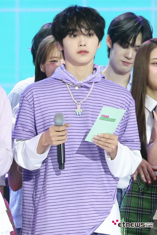 크래비티 형준이 10일 서울 상암동 SBS프리즘타워에서 진행된SBS funE ‘더 쇼’ 현장 미디어 공개 일정에 참석해 MC를 보고 있다. 전자신문인터넷 이승훈 기자 (mozart1205@etnews.com) [Copyright © 전자신문. 무단전재-재배포금지]
