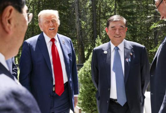 도널드 트럼프 미국 대통령은 주요 7개국(G7) 정상회의 도중 긴급 귀국하기에 앞서, 이시바 시게루 일본 총리와는 약 30분간 정상회담을 가졌다. 미일 정상회담이 첫날 빠르게 이뤄진 데는 초청국인 우리와 달리 '회원국'인 미국과 일본이 같은 곳에서 행사 일정을 진행한 데 따른 것으로 전해졌다.