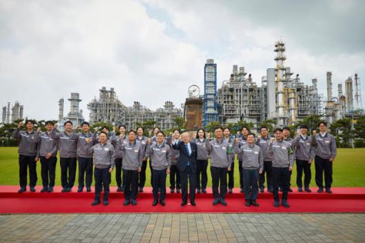 김 회장은 공장 주요 시설을 둘러본 뒤 "현장을 방문해보니 종합 석유화학 공장을 안전하고 효율적으로 가동해 온 여러분의 저력과 기술력에 대한 자부심, 그리고 뜨거운 열정을 생생히 느낄 수 있었다"며 "안전은 우리가 결코 간과해서는 안 될 가치"라고 강조했다. 그는 이어서 "소재∙에너지 산업은 그 어느 때보다도 복잡하고 예측하기 힘든 경영 환경에 직면해 있다"며 "원가 절감과 공장 효율을 높이기 위한 혼신의 노력과 동시에 끊임없는 혁신을 바탕으로 기술과 품질 경쟁력 강화에 집중해 달라"고 당부했다.