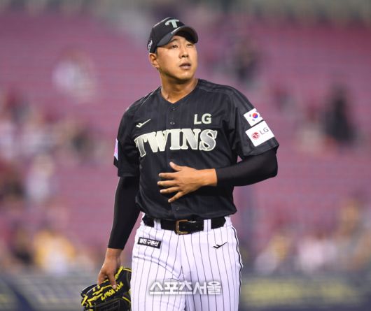 LG 투수 정우영이 17일 서울 잠실구장에서 열린 2025 KBO리그 NC와 경기 5회초 1사만루 상대 데이비슨을 병살타 처리한 후 안도의 한숨을 쉬고 있다.2025. 6. 17.잠실 | 최승섭기자 thunder@sportsseoul.com [기사제보 news@sportsseoul.com] Copyright ⓒ 스포츠서울&sportsseoul.com