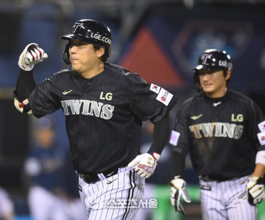 LG 김현수가 17일 서울 잠실구장에서 열린 2025 KBO리그 NC와 경기 5회말 1사1루 우월홈런을 날린 후 오스틴과 하이파이브를 하고 있다.2025. 6. 17.잠실 | 최승섭기자 thunder@sportsseoul.com [기사제보 news@sportsseoul.com] Copyright ⓒ 스포츠서울&sportsseoul.com