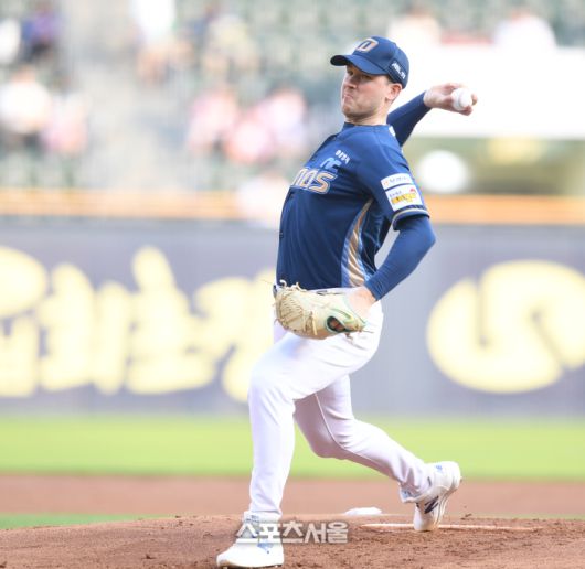NC 선발투수 라일리가 17일 서울 잠실구장에서 열린 2025 KBO리그 LG와 경기에서 역투하고 있다.