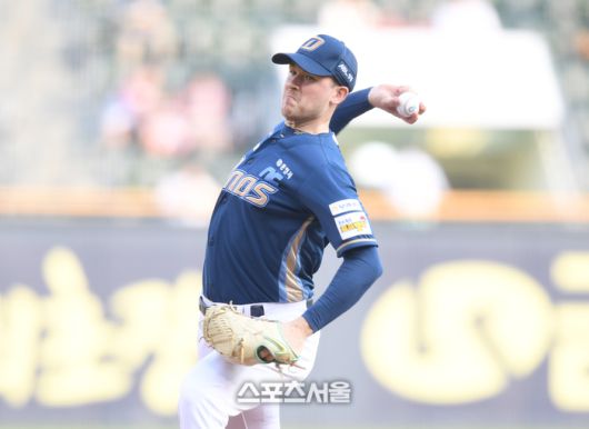 NC 선발투수 라일리가 17일 서울 잠실구장에서 열린 2025 KBO리그 LG와 경기에서 역투하고 있다.