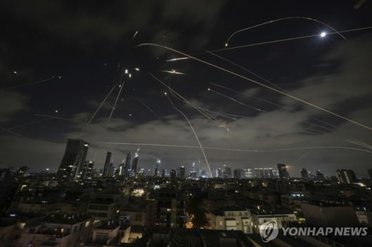 이스라엘 텔아비브 상공. [사진출처 = 연합뉴스] |