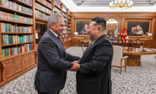 평양에서 만난 김정은 북한 국무위원장과 세르게이 쇼이구 러시아 국가안보회의 서기. 연합뉴스 |