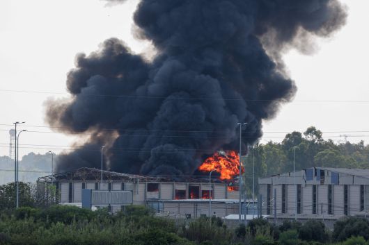 17일(현지시간) 이란 텔아비브 인근 헤르즐리야의 한 건물에서 발생한 화재로 연기가 피어오르고 있다. [AFP] |
