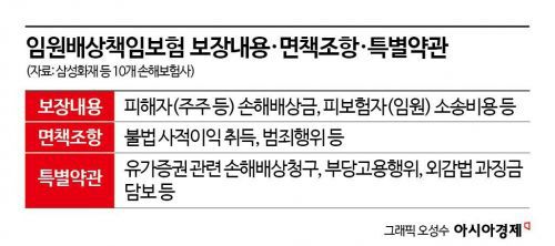D&O에 가입하려는 기업·임원이 가장 눈여겨봐야 할 건 면책조항이다. 면책조항을 제대로 숙지하지 않으면 보험사로부터 소송비 등을 제대로 보장받지 못할 수 있기 때문이다.