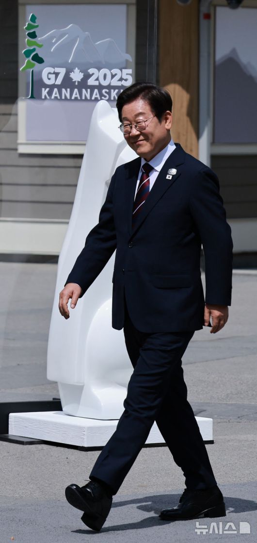 [카나나스키스(캐나다)=뉴시스] 최진석 기자 = 이재명 대통령이 17일(현지 시간) 캐나다 앨버타주 카나나스키스 주요 7개국(G7) 정상회의장에서 열린 초청국 공식 환영식에 도착하고 있다. 2025.06.18. myjs@newsis.com |