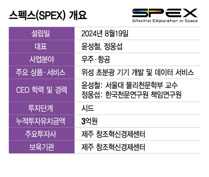 스펙스의 공동대표인 정웅섭 한국천문연구원 책임연구원은 세계 최초 광시야 적외선 초분광 우주망원경인 '근적외선 영상 분광기(NISS)' 개발을 주도한 분광기술 권위자다. 나사(NASA·미국 항공우주국)의 우주망원경 프로젝트 '스피어엑스(SPHEREx)'에도 참여한 바 있다. 이 같은 우주 기술 노하우를 바탕으로 스펙스는 NASA·ESA(유럽우주국) 중심의 기술 독점을 돌파할 민간 대안으로 주목받는다.