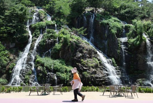 지난 12일 서울 서대문구 홍제천 인공폭포에서 시원한 물줄기가 흘러내리고 있다./연합뉴스 |