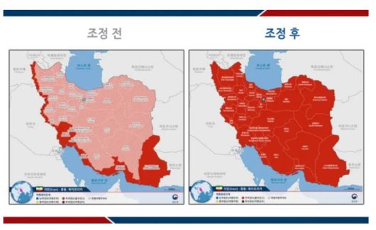 앞서 외교부는 지난 14일부터 기존 2단계(여행자제) 발령 지역을 특별여행주의보로 격상했다. 이스라엘과 이란 간 무력 충돌이 계속되자 이를 3단계로 재차 높인 것이다. 기존 3단계 지역은 그대로 유지된다. 이에 따라 이란 내 모든 지역에 3단계가 적용된다.
