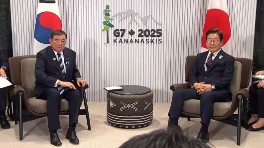 주요 7개국(G7) 정상회의 참석을 위해 캐나다를 방문한 이재명 대통령이 17일 오후(현지시간) 캐내내스키스에서 이시바 시게루 일본 총리와 정상회담을 가졌습니다.