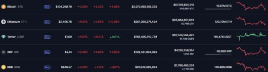 가상자산 시세.(자료=코인마켓캡 사이트 갈무리) |