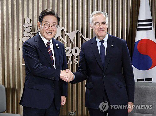 (캐내내스키스[캐나다]=연합뉴스) 임형섭 설승은 기자 = 주요 7개국(G7) 정상회의 참석을 위해 캐나다를 방문 중인 이재명 대통령은 17일 오후(현지시간) 캐내내스키스에서 마크 카니 캐나다 총리와 정상회담을 가졌다.