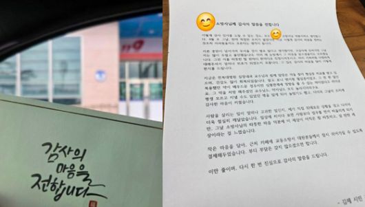 A씨는 약 두달 뒤인 지난 16일 소방서를 직접 찾아 장문의 편지와 함께 마음을 담은 선물을 전달했다.