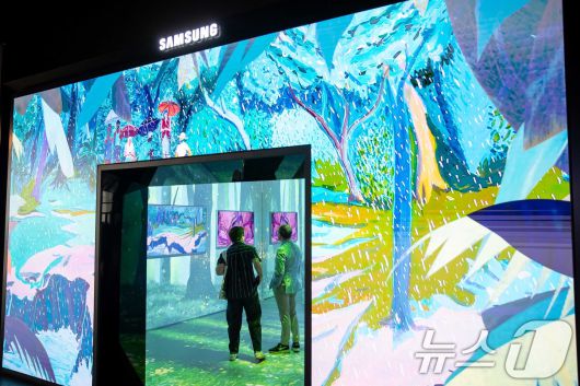 (서울=뉴스1) = 삼성전자가 오는 22일까지 스위스 바젤에서 열리는 세계 최대 아트 페어 '아트 바젤 인 바젤 2025'에서 삼성 아트 스토어를 활용해 세계적인 아티스트들과의 협업 전시를 선보인다고 18일 밝혔다. 사진은 디지털 아트 체험 공간인 삼성 라운지 '아트큐브' 전시장. (삼성전자 제공. 재판매 및 DB 금지) 2025.6.18/뉴스1