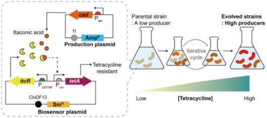 연구팀은 이타콘산을 많이 만들수록 살아남는 조건을 설정해 대장균을 진화시켰다.