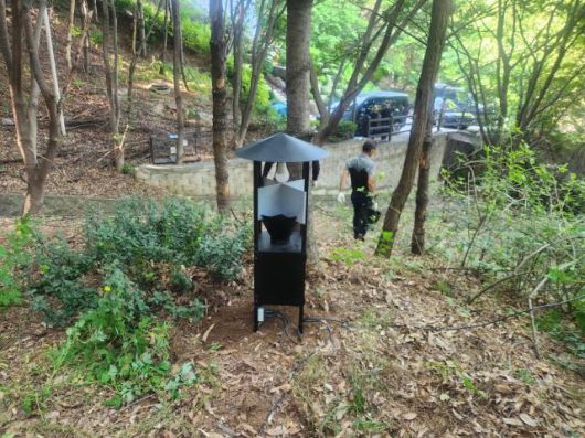 생활불쾌 곤충인 붉은등우단털파리(러브버그) 광원 포집기. |