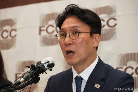 김민석 국무총리 후보자가 17일 서울 중구 한국프레스센터에서 열린 외신기자 간담회에 참석해 발언하고 있다./사진=뉴시스 |