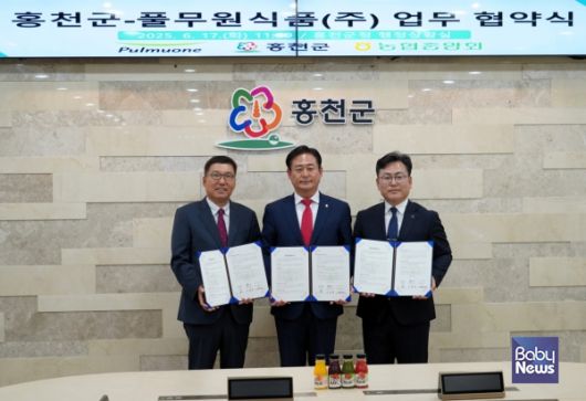 지난 17일 홍천군청에서 열린 이번 협약식에는 풀무원 이우봉 총괄CEO, 신영재 홍천군수, 농협중앙회 김준태 홍천군지부장 등 관계자가 참석했다.