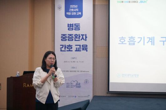 6월 10일 열린 ‘병동 중증환자 간호 교육’에서 전북대학교병원 정현진 교육전담간호사가 ‘호흡기계 구조 및 기능’을 강의하고 있다. 사진 제공: 국립중앙의료원 |