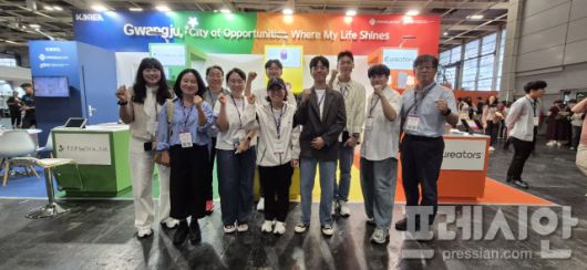 ▲ 광주경제진흥상생일자리재단(대표 김현성)은 지난 13일부터 15일까지 3일간 개최된 '2025 코리아 엑스포 인 파리(Korea Expo in Paris 2025)'에 지역 기업들과 함께 광주광역시 공동관으로 참가하며 기념촬영을 하고 있다.ⓒ광주광역시 |