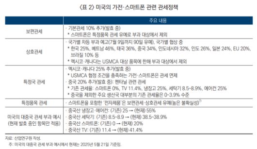 미국의 스마트폰·가전 관련 관세 정책. [사진=산업연구원] |