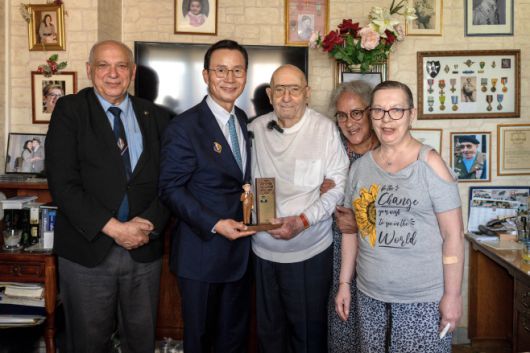 파리에어쇼 참가차 프랑스를 방문 중인 신 대표는16일(현지시간) 파리의 참전용사 세르주 아르샹보(95·Serge ARCHAMBEAU)씨 자택을 찾아 감사패와 기념품을 전달했다.