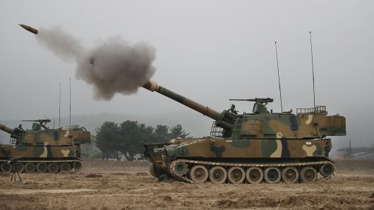 ▲ 지난해 4월 17일 수도포병여단, 17사단, 해병2사단이 실시한 합동 포탄사격 훈련