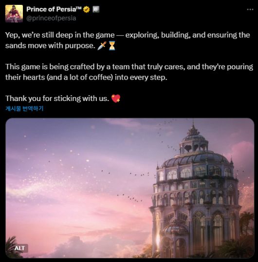 17일 유비소프트는 페르시아의 왕자 공식 X에서 시간의 모래 리메이크 개발 현황에 대해 간략히 언급했다. 지난해 6월 2026년 출시를 목표하고 있다는 소식 이후 약 1년 만에 나온 소식이다.