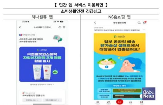 '하나원큐’ 앱과 'NS 홈쇼핑’ 앱 등 민간앱을 통해서도 위험제품을 신고할 수 있고, 리콜·주의보 등 안전정보와 생필품 가격정보를 신속하게 확인할 수 있게 됐다.