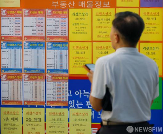 [서울=뉴스핌] 류기찬 인턴기자 = 서울 아파트값이 급등하면서 9개월여 만에 최고 주간 상승률을 기록하고 있는 가운데 18일 오전 서울 송파구 한 상가에 부동산 매물이 표시되어 있다. 2025.06.18 ryuchan0925@newspim.com