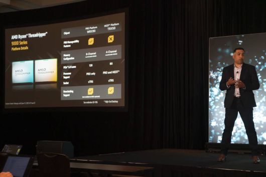 소우랍 디르(Sourabh Dhir) AMD 수석 프로덕트 매니저가 스레드리퍼 프로 9000 WX 및 스레드리퍼 9000 시리즈를 소개 중이다 / 출처=IT동아 |
