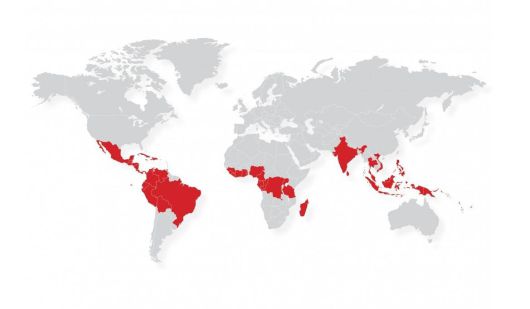 붉게 표시된 지역이 카카오 생산 국가들. 카카오 생산 국가 대부분은 기후 변화로 생산량 감소세에 진입했다 / 출처=국제코코아기구(ICCO) |