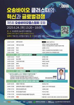 [라포르시안] 오송바이오헬스협회(회장 은병선)는 이달 24일 오후 1시 20분부터 충북C&V센터 대회의실에서 '오송 바이오 클러스터의 혁신과 글로벌 경쟁'을 주제로 제5회 포럼을 개최한다.