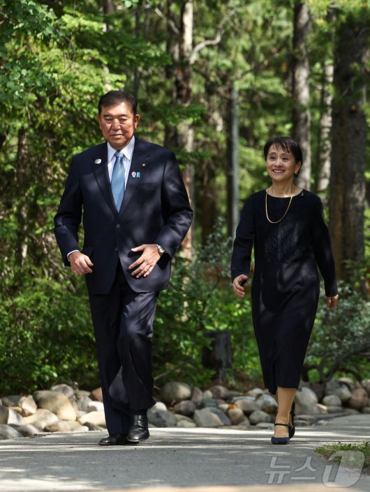 (캐내내스키스 로이터=뉴스1) 강민경 기자 = 이시바 시게루 일본 총리가 16일 아내 요시코 여사와 함께 G7 정상회의가 열리는 캐나다 앨버타주 캐내내스키스에 도착하고 있다. 2025.6.16 ⓒ 로이터=뉴스1 Copyright ⓒ 뉴스1. All rights reserved. 무단 전재 및 재배포, AI학습 이용 금지.