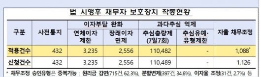 법 시행 이후 6개월 간 신청된 채무조정 1126건 중 96.6%인 1088건에 대해 원리금 감면, 분할변제 등 조정이 완료됐다.