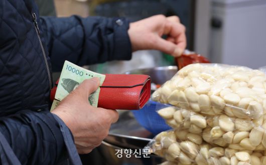 지난 3월6일 서울 서대문구 영천시장에서 한 시민이 장을 보고 있다. 김창길 기자 |