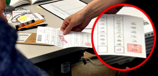 회송용 봉투에서 나왔다는 더불어민주당 이재명 대선 후보에게 기표된 용지. 경기일보 제공 |