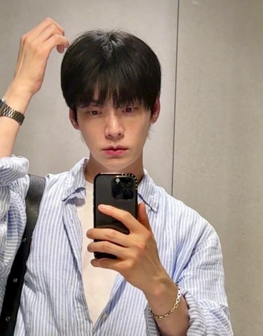 공개된 사진들 속에서 안재현은 블랙 진에 화이트 반팔 티셔츠 그 위에 스트라이프 셔츠를 매치해 노멀한 룩을 선보였다. 여기에 시계와 블랙 숄더백을 매치해 고학번 대학생 비주얼을 완성해 눈길을 끌었다.