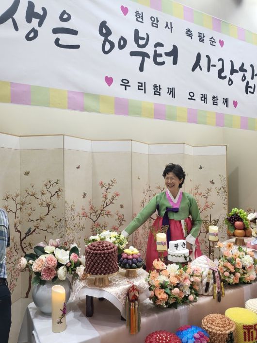 창립 80주년을 맞아 팔순잔치 콘셉트로 꾸민 현암사 부스에서 조미현 대표가 한복을 입고 독자를 맞고 있다. 최윤아 기자 |