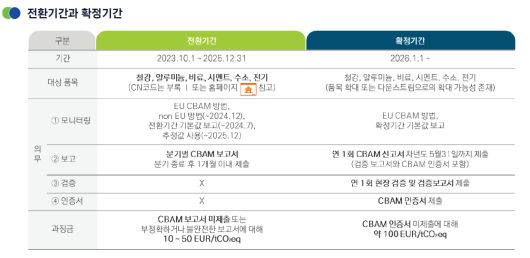 CBAM이 적용되는 철강, 알루미늄, 시멘트, 비료, 전력, 수소 6개 품목 수출기업들이 당장 내년 1월부터 직접적 영향권에 들어 대책 마련이 절실한 상황이다.