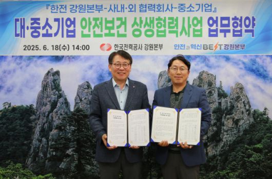 한국전력 강원본부(본부장 송호승)는 18일 종합상황실에서 ‘2025년 대·중소기업 안전보건 상생협력사업’ 시행을 위해 사내·외 협력사 및 중소기업 등 11개사와 업무협약을 했다.
