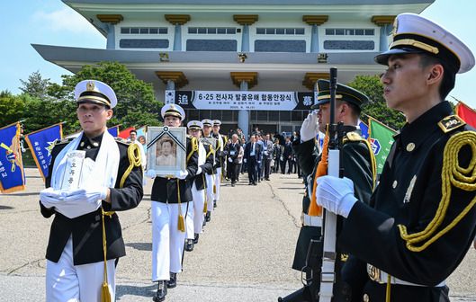 대전현충원 합동 안장식을 주관한 고창준 육군참모총장 직무대리는 조사를 통해 "육군 전 장병은 선배님들의 고귀한 희생과 헌신으로 지켜온 대한민국이 더욱 빛날 수 있도록 국군의 사명 완수에 진력하겠다"고 말했습니다.