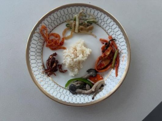 함께 공개된 사진에는 김준호를 위한 식사가 담겼다. 원형 그릇에 멸치볶음, 무생채, 버섯 등 한식 반찬과 한 두 숟가락 분량 밖에 되지 않는 적은 밥이 담겼다.